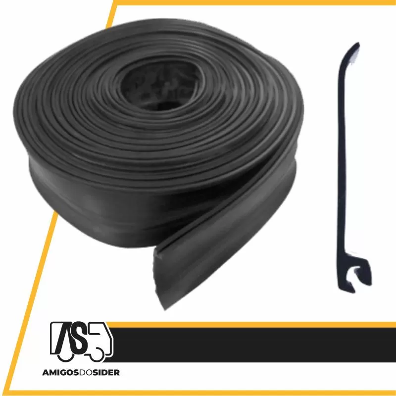 É instalado entre o teto e a lateral para impedir a entrada de água e molhar a carga do implemento.
